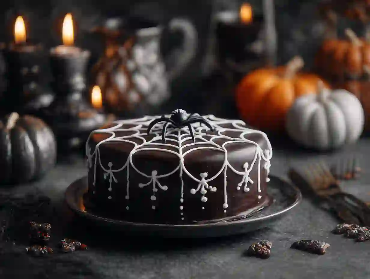 - Spiderweb Design: Pipe thin circles of black gel on top of the cake. Drag a toothpick outward from the center to form a web.