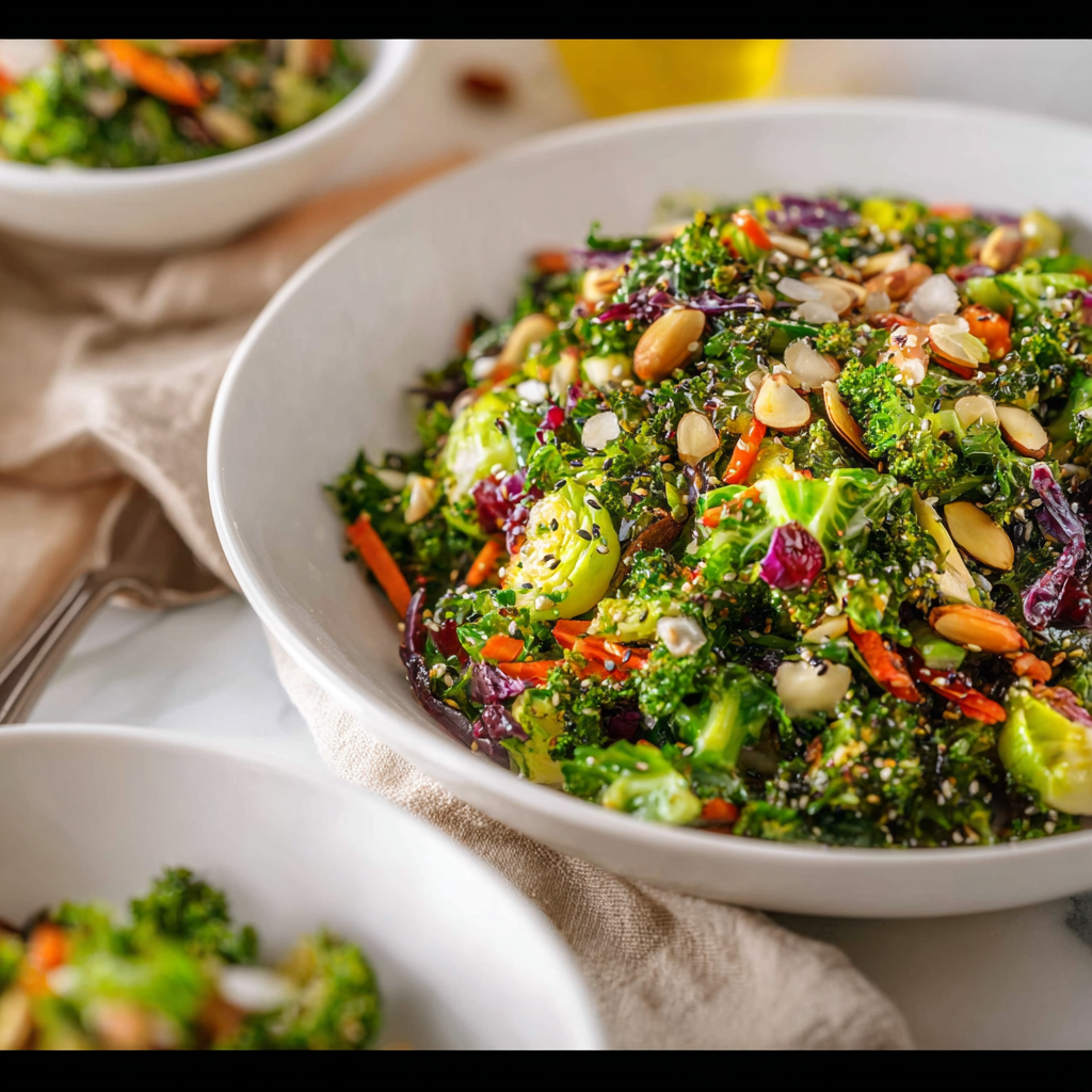 Craving something light yet satisfying for the warm months? This healthy summer salad is your answer. My Favorite Detox Salad blends nutrient-packed leafy greens with crunchy, vibrant vegetables and a bright, zesty lemon ginger dressing. It’s a one-bowl wonder that’s refreshing, filling, and incredibly versatile. Whether you’re meal-prepping for the week or craving a quick lunch, this recipe delivers bold flavor without any pork, ham, or alcohol—just wholesome, plant-based goodness. The star trio of kale, broccoli, and Brussels sprouts offers earthy textures and a peppery bite, balanced by the slight sweetness of shredded carrots and red cabbage. Top it all with toasted almonds and sunflower seeds for crunch, plus a dollop of creamy avocado or yogurt if you like it heartier. Ready to make this seasonal favorite?